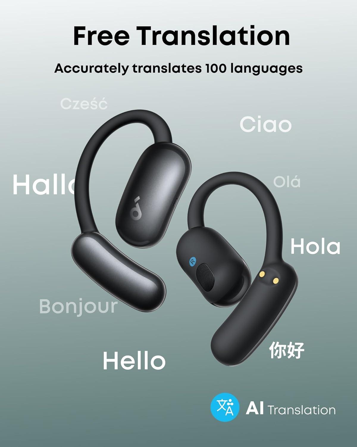 imageSoundcore AeroFit 2 AI Assistant OpenEar Headphones by Anker PressureFree Fit 2X Richer Bass RealTime Translation Earbuds HiRes 35H Playtime IP55Obsidian Black