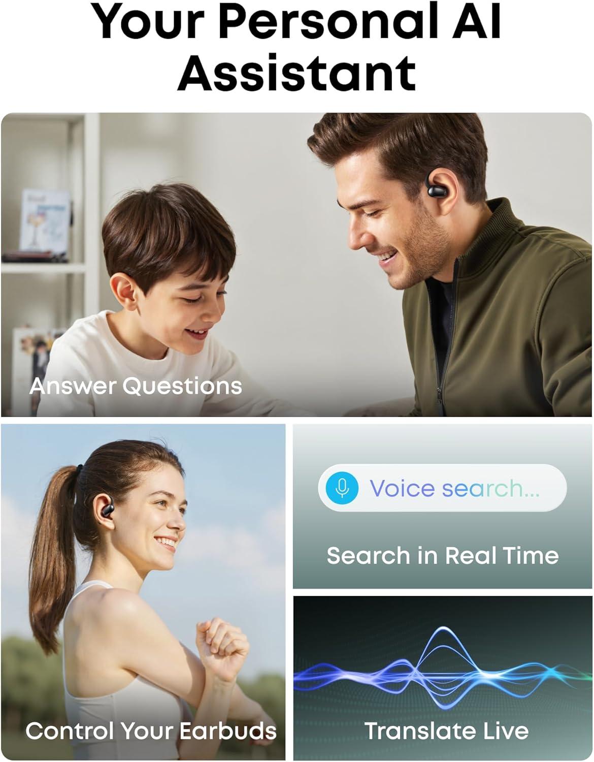 Soundcore AeroFit 2 AI Assistant Open-Ear Headphones by Anker, Pressure-Free Fit, 2X Richer Bass, Real-Time Translation Earbuds, Hi-Res, 35H Playtime, IP55(Obsidian Black)
