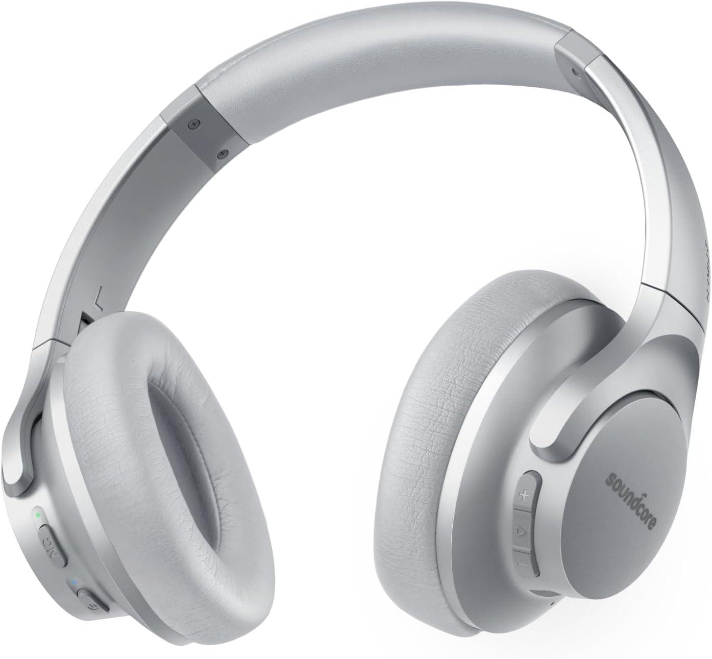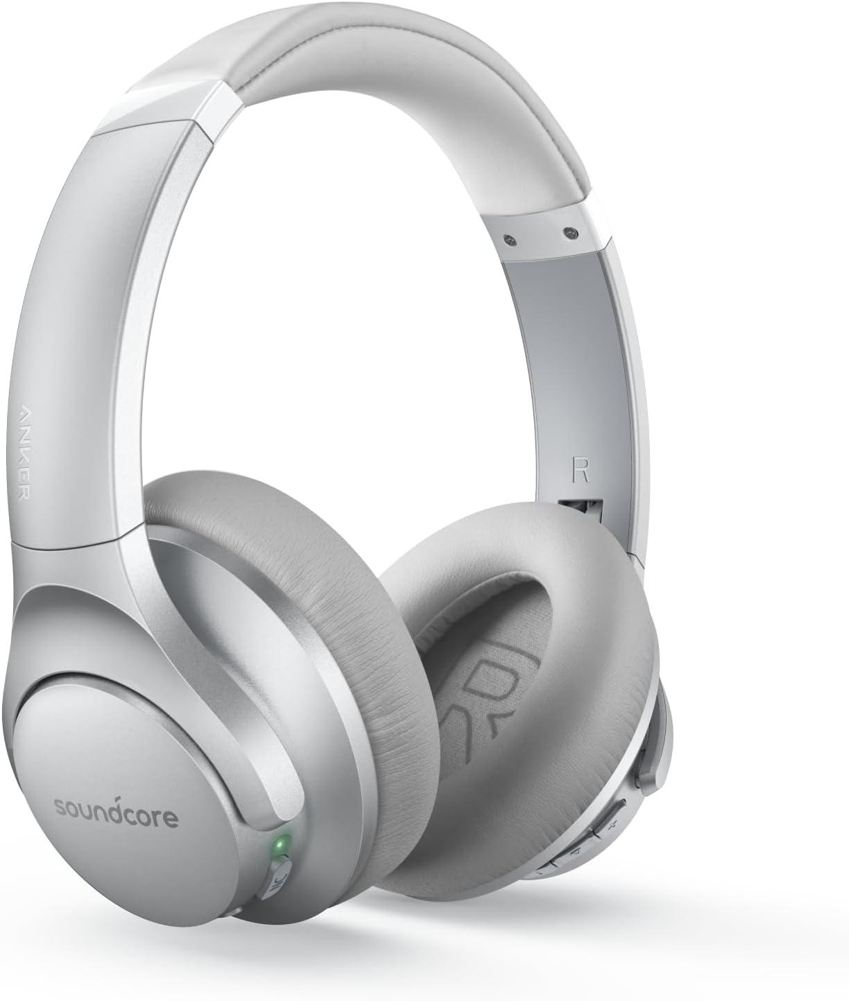 Soundcore Anker Life Q20 Hybrid Active Noise Cancelling Headphones, Wireless Over Ear Bluetooth Headphones, 60H Playtime, Hi-Res Audio, Deep Bass, Foam Ear Cups, Travel, Office, USB-C Charging(Silver)