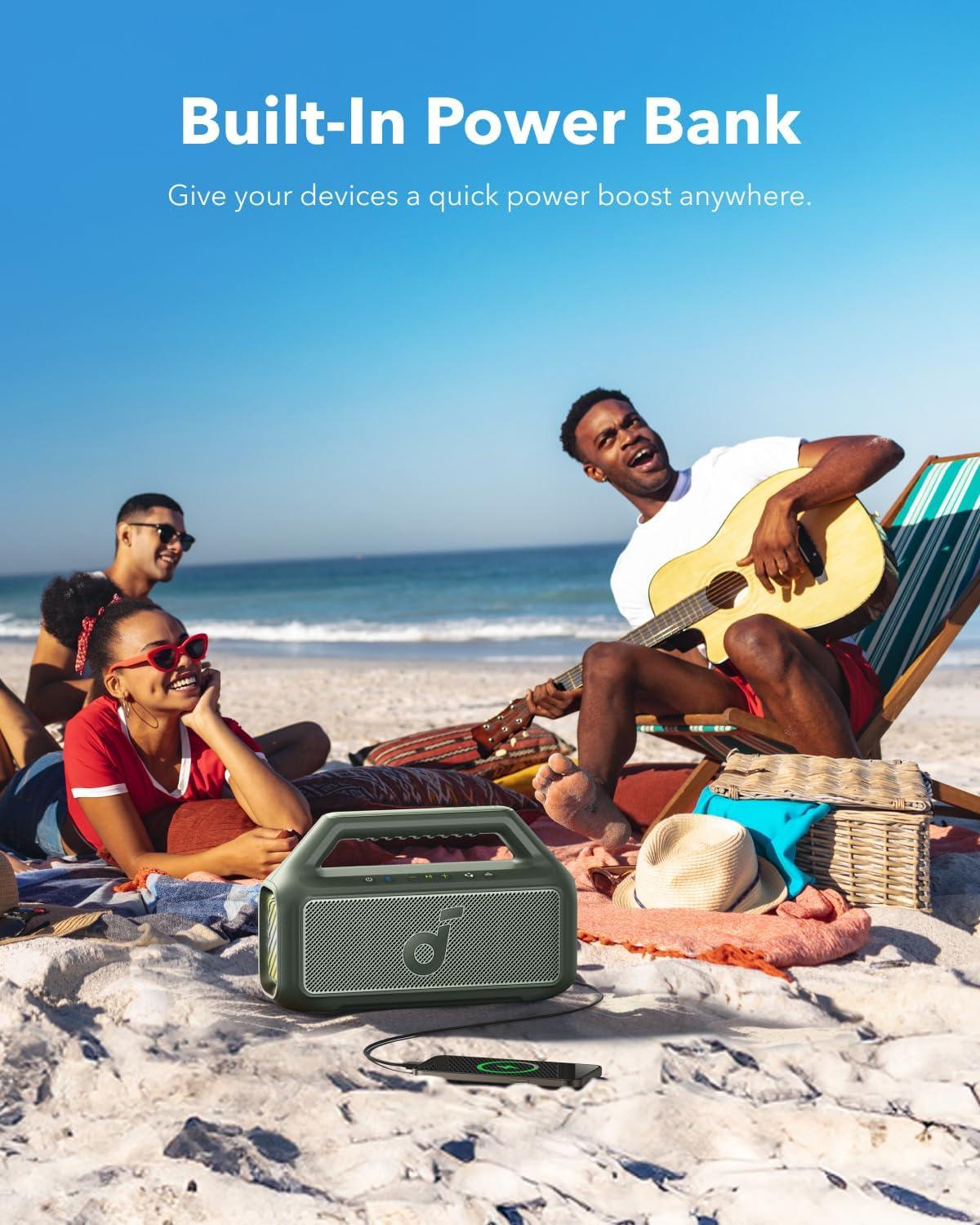 imagesoundcore Boom 2 By Anker Outdoor Speaker 80W Subwoofer BassUp 20 24H Playtime IPX7 Waterproof Floatable RGB Lights USBC Custom EQ Bluetooth 53 Portable for Camping Beach and BackyardGreen