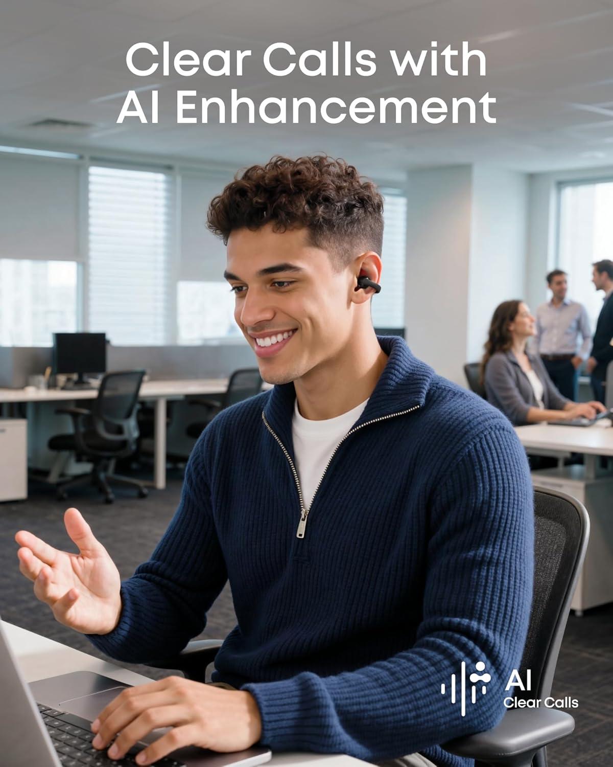 AI-Enhanced Clear Calls: Advanced AI algorithm picks up your voice with precision while filtering background noise, ensuring crystal-clear, effortless calls.