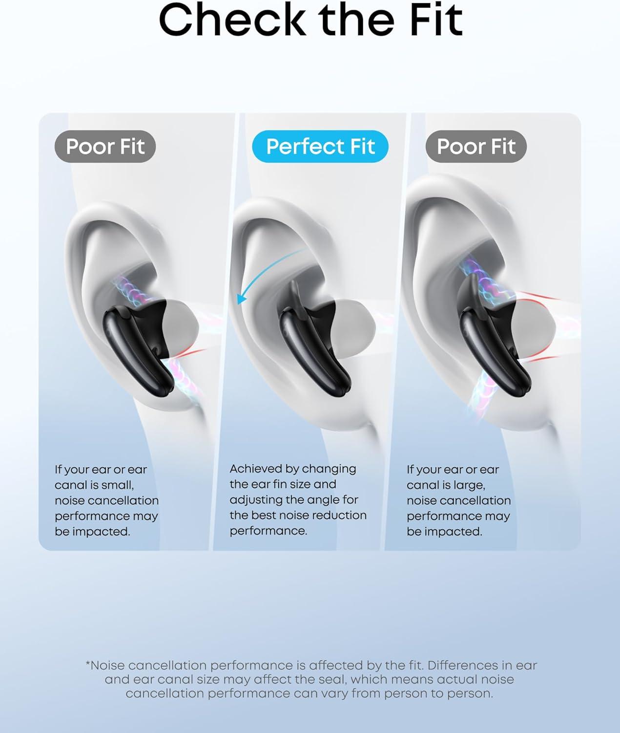 Semi-In-Ear Design with Secure Fins: Enjoy breathable, non-stuffy comfort for all-day wear. Includes 4 ear fin sizes to accommodate a wide range of ear shapes and sizes.