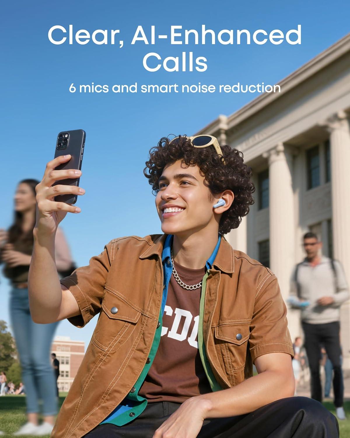 6 AI-Enhanced Mics for Clear Calls: Six microphones work with an AI noise reduction algorithm to separate your voice from background noise. The wind-noise reduction algorithm keeps calls clear even outdoors.