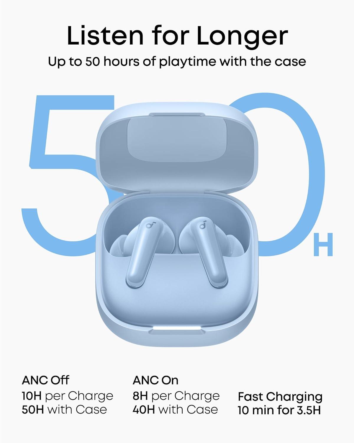Ultra-Long Playtime & Fast Charging: Enjoy up to 10 hours of playtime on a single charge (50 hours with the case). Even with ANC on, get 8 hours per charge and 40 hours total. A quick 10-minute charge gives 3.5 hours of listening.