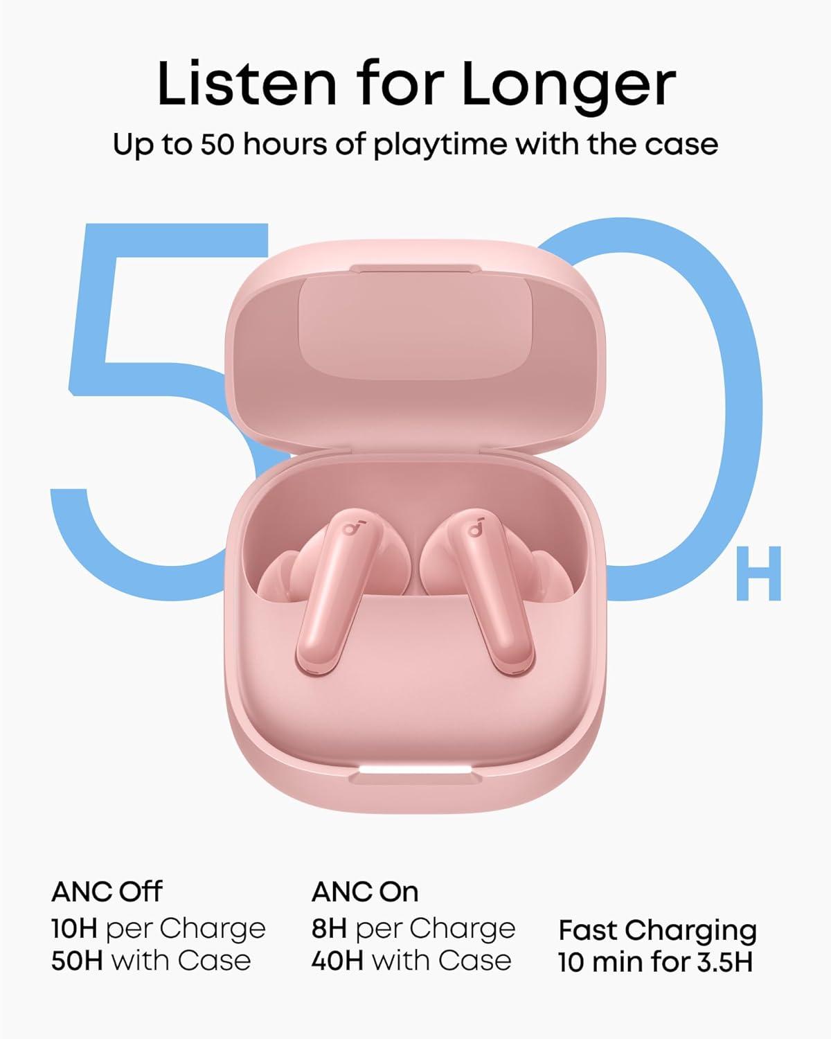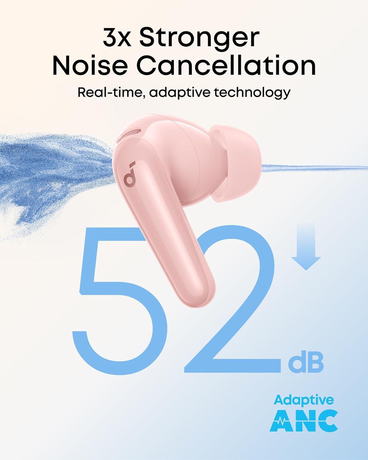Soundcore P31i by Anker, Real-Time Adaptive Noise Cancelling, Hi-Res Sound, Translation Earbuds, 50H Playtime, Wireless Earbuds, Bluetooth Earphones, Spatial Audio, Fast Charging, IP55(Pink)