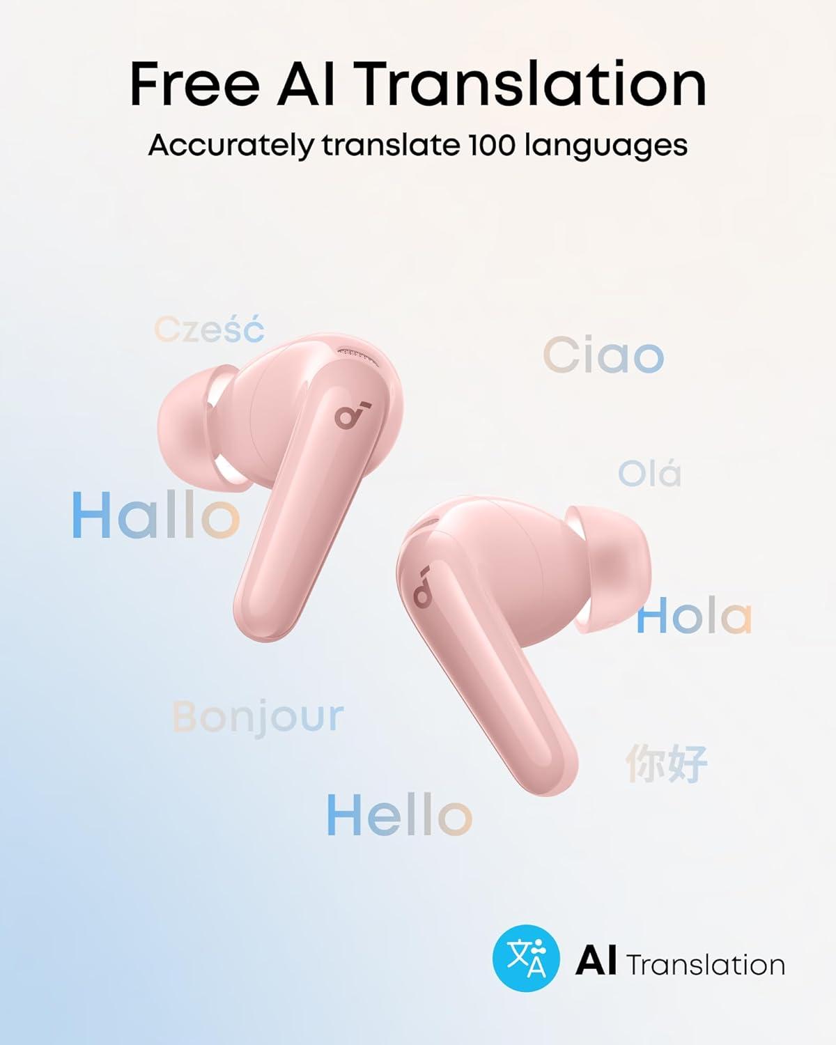imageSoundcore P31i by Anker RealTime Adaptive Noise Cancelling HiRes Sound Translation Earbuds 50H Playtime Wireless Earbuds Bluetooth Earphones Spatial Audio Fast Charging IP55Pink