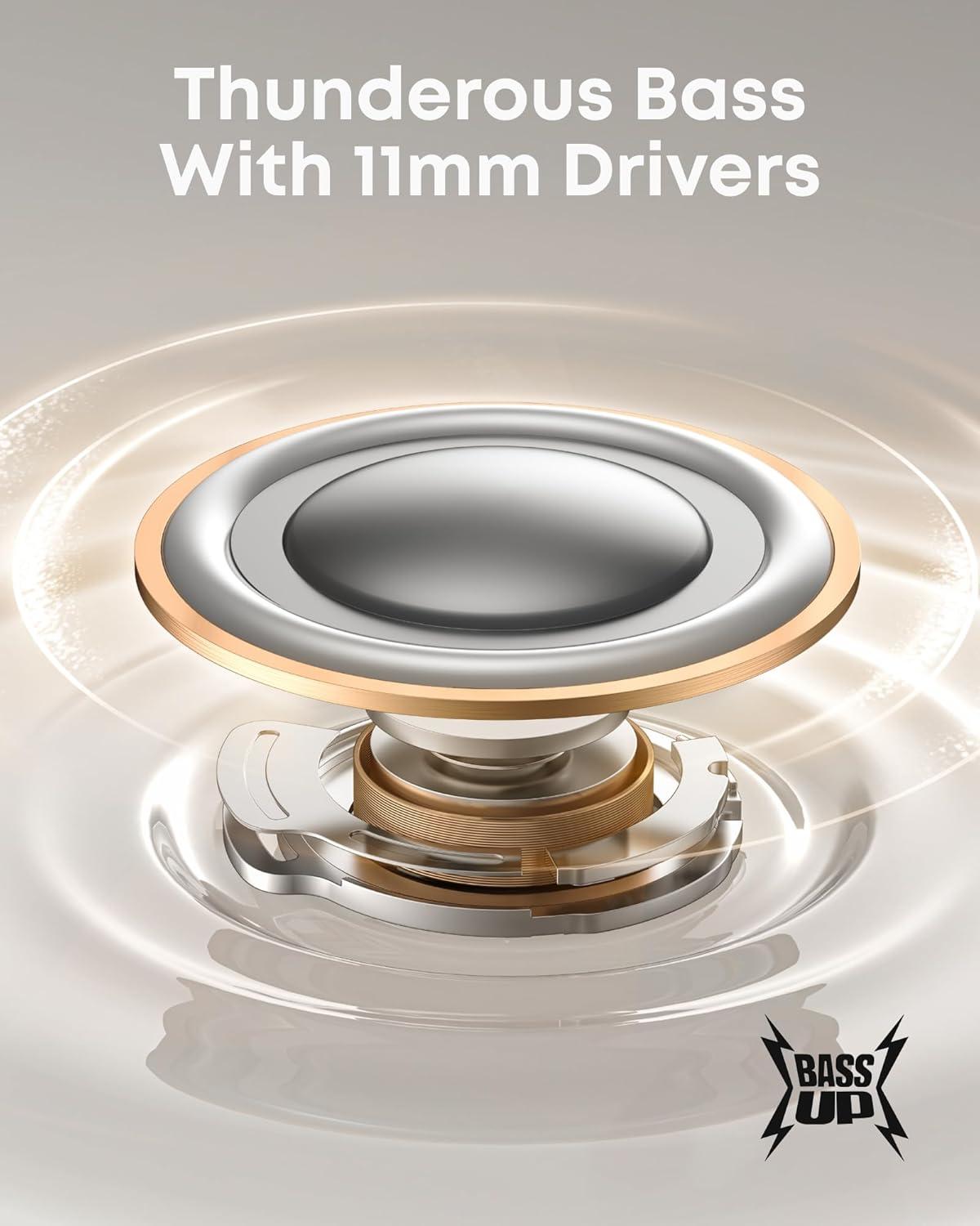 Thunderous Bass: soundcore P41i's 11mm composite drivers deliver captivating sound, paired with BassUp tech to unleash intense, high-impact bass.