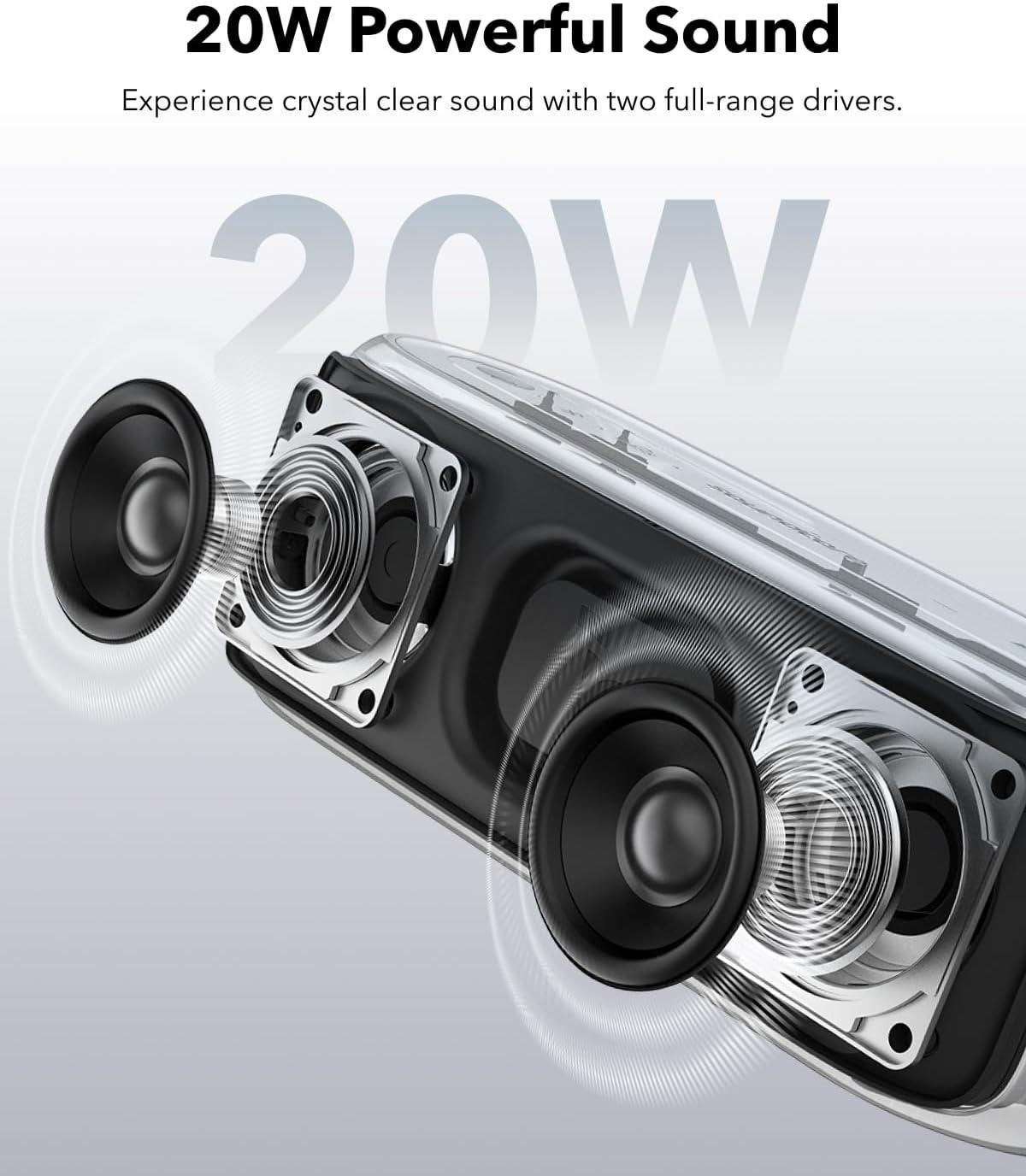 Stereo Sound and Dual Full-Range Drivers: Experience rich 20W stereo sound and clarity with this wireless Bluetooth speaker featuring dual full-range drivers.
