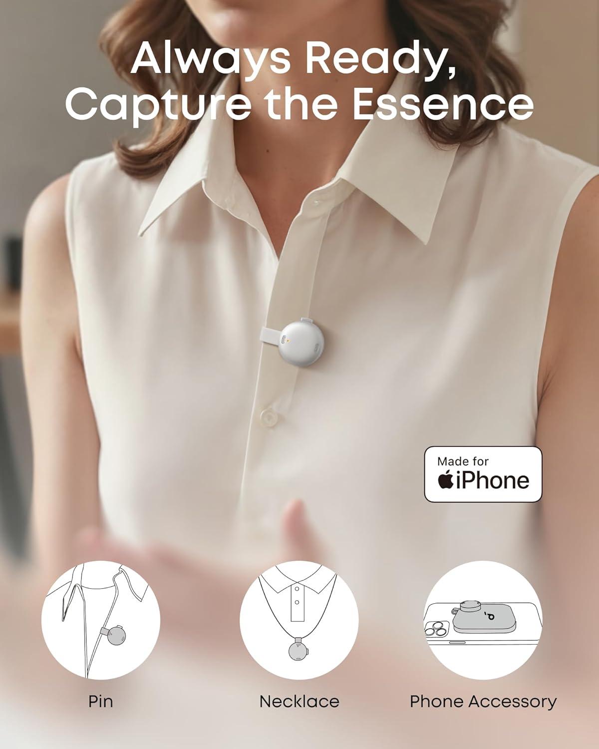 Instant Recording: Weighing just 10 g and only 23.2 mm in diameter, clip to collar, hang around your neck, or attach the charging case (microphone inside) to your phone. Start recording instantly with a single button press.